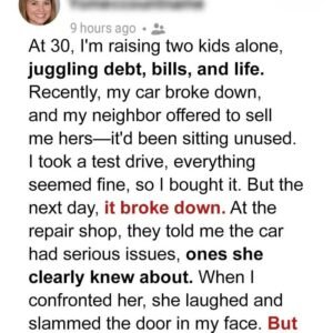 The car smelled like leather and faint perfume—nothing like bleach or burnt toast. Evelyn sat behind the wheel, hands resting lightly on it, eyes on the windshield. For a moment I thought she might change her mind.