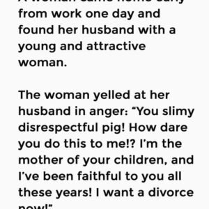 A woman came home early from work one day and found her husband with a young and attractive woman. The woman yelled at her husband in anger:…