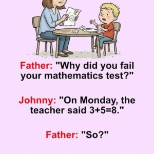 Father: “Why did you fail your mathematics test?” Johnny: “On Monday, the teacher said 3+5=8.” Father: “So?” Johnny: “On Tuesday, she said 4+4=8 And on Wednesday, she…