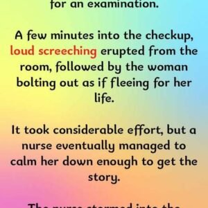 A woman visited a doctor’s office for an examination. A few minutes into the checkup, loud screeching erupted from the room, followed by the woman bolting out…