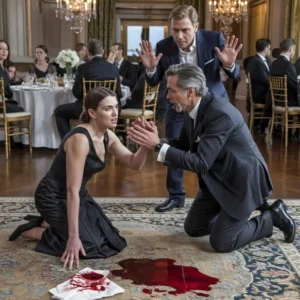 The crystal wine glass slipped from my trembling fingers, and deep crimson liquid splashed across the pristine white tablecloth like an accusation. Time seemed to slow as…